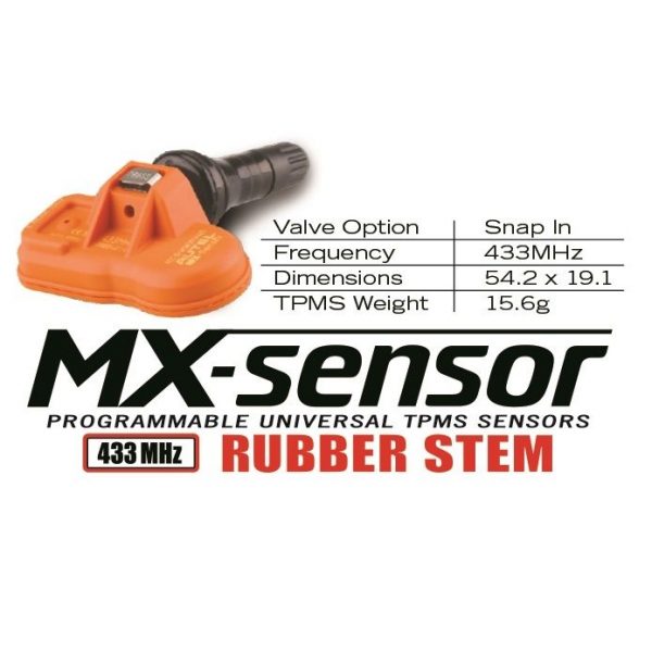 Autel MX-Sensor med utskiftbare gummiventiler. Dekker 98% av kjøretøyer på markedet. MX-Sensor er laget med samme kvalitet og holdbarhet som OEM-sensorer. Vi kalibrerer og monterer sensorene ved kjøp av hjulpakke.