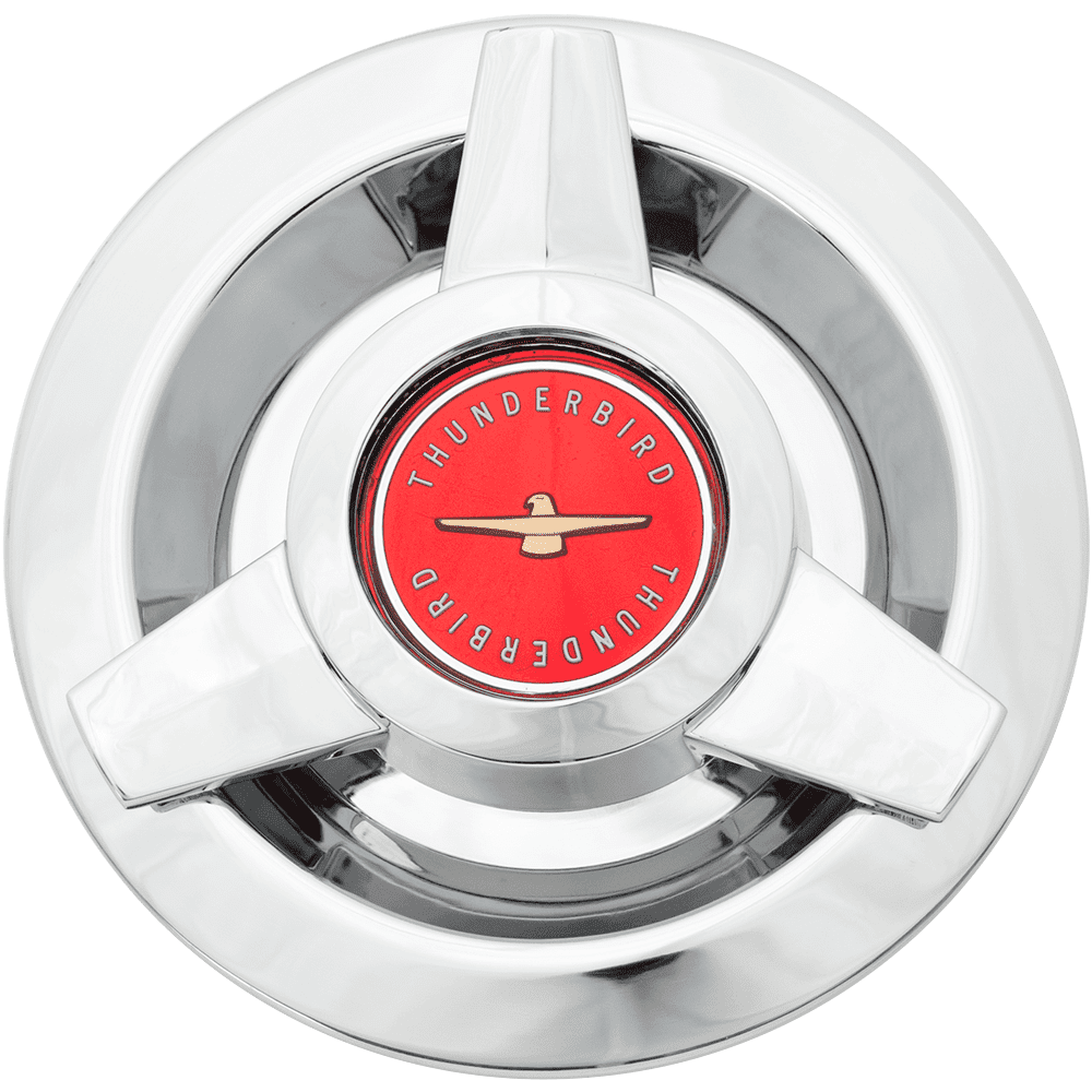 Navkopp til Thunderbird eikerfelger. Nostalgisk kopp med rødt emblem.